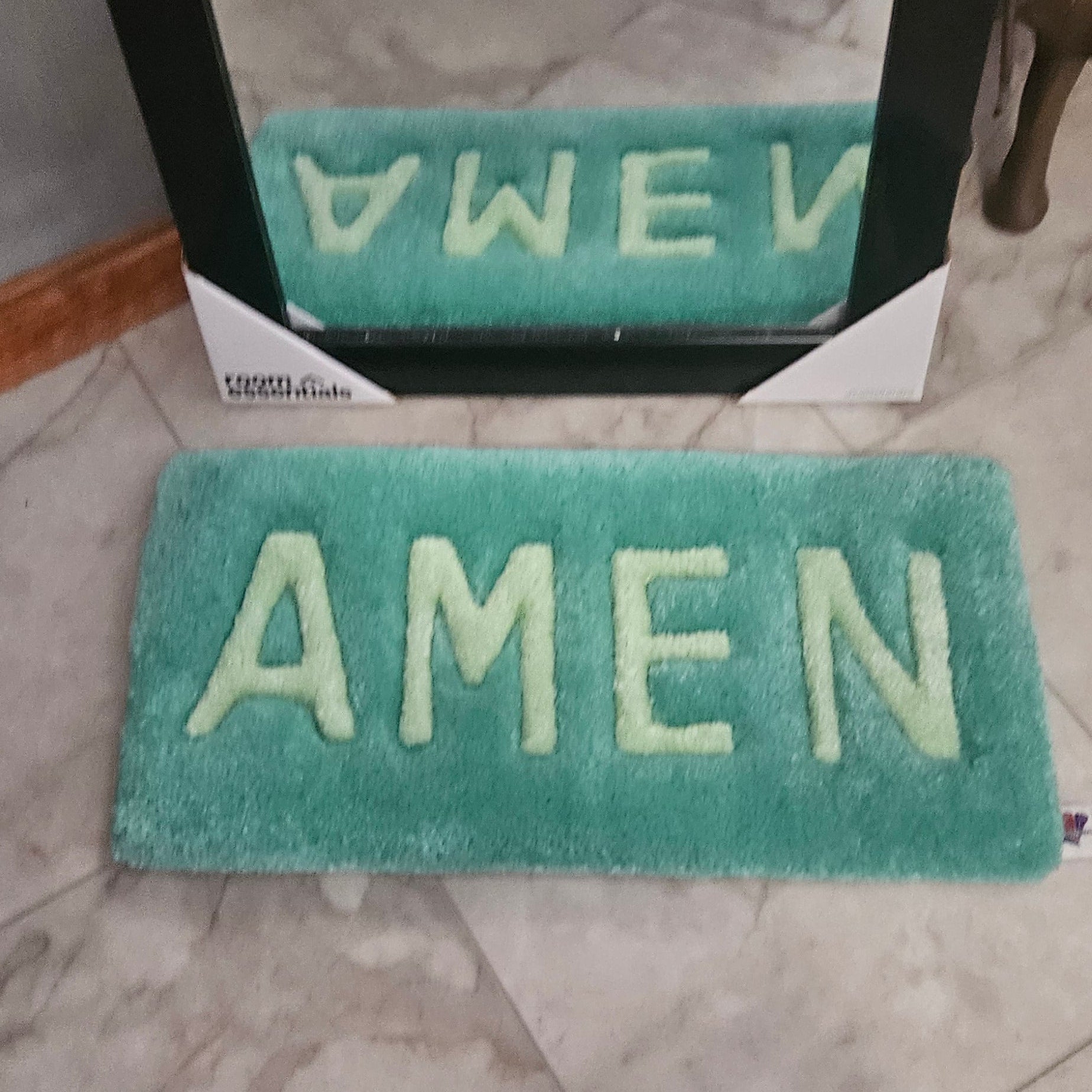 One word. All the weight it carries. “AMEN” hand-tufted and carved into a plush prayer mat built to hold your knees and close your practice with intention. Simple. Powerful. Exactly enough.