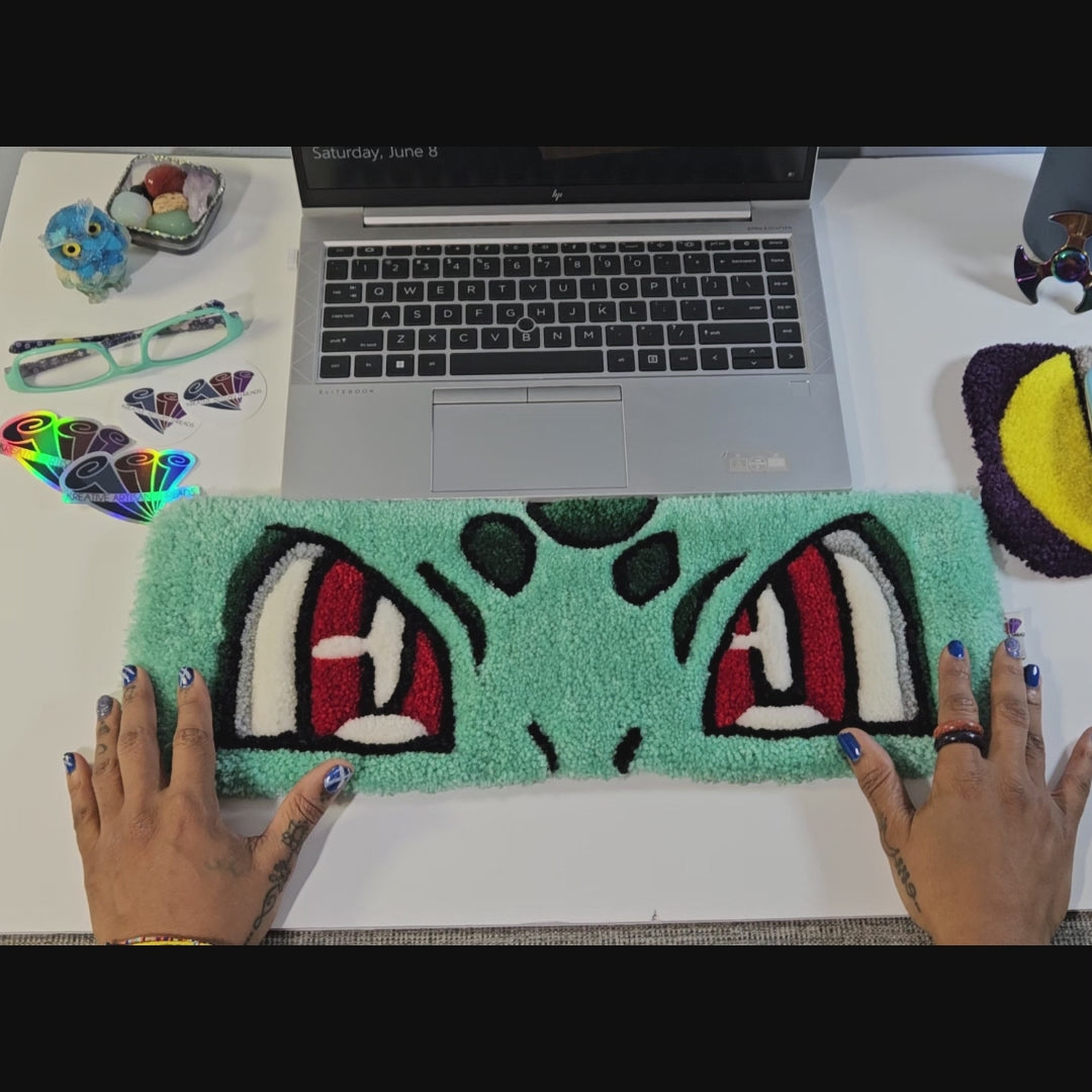 Request a Custom PieceMake your workspace a little wilder with the Anime Eyes: Bulbasaur Keyboard Pad. Hand-tufted in vibrant teal, deep red, and dark green with sculpted carving for maximum texture, this desk mat channels Bulbasaur’s cute but powerful energy into your daily grind.