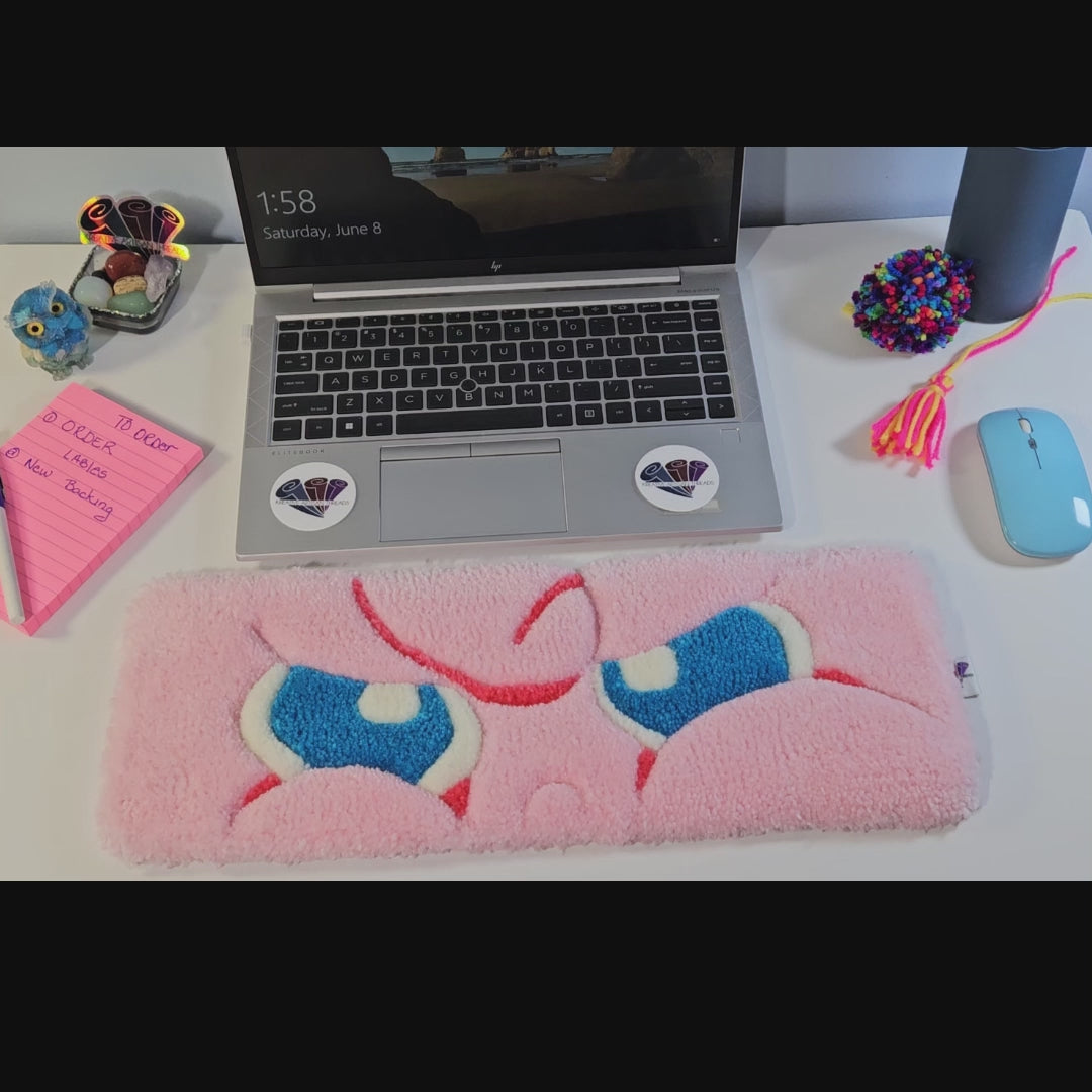 Request a Custom PieceBring the perfect mix of cute and chaos to your workspace with the Anime Eyes: Jigglypuff Keyboard Pad. This hand-tufted fiber art piece captures Jigglypuff’s iconic side-eye in plush, sculpted texture, a must-have for any Pokémon fan.